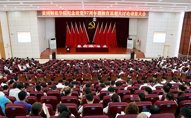 关于“学习新思想,黄师怎么做”,王立兵指出,在党的生日到来之际,我们回顾党的历史,回首我们走过的路,探讨我们的黄师梦,就是要让全校广大党员坚定跟党走的信念,永葆中国共产党人97年来的奋斗精神;就是要让全校广大党员不忘初心,不忘我们走过的艰苦创业之路,面向未来,面向更高更远的目标奋力前行。他强调,要坚持立德树人根本任务不含糊,坚持本科教育核心地位不动摇,坚持教育教学改革不松劲,坚持教师全员育人不放任,坚持弘扬务实担当精神不懈怠。全体党员特别是党员领导干部要树牢责任担当意识,恪尽职守,沉稳应对,在急难险重面前,当仁不让,冲锋在前,做广大教职工的“主心骨”,做学校建设发展的中流砥柱,让“党员先锋”的旗帜高高飘扬在学校上空。
