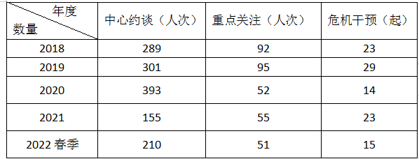 黄冈师范学院2018-2022年春季心理健康教育情况一览表
