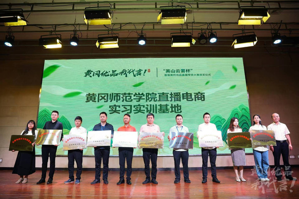 本网讯 9月27日,“英山云雾杯”首届黄冈优品直播带货大赛决赛及颁奖仪式在英山举行,我校被授予“特别组织奖”。校党委常委、副校长夏庆利出席仪式,并为获得前十名的企业颁授“黄冈师范学院实习实训基地”牌匾。
