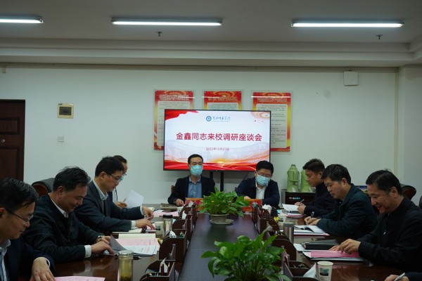 本网讯 10月27日下午,市委副书记、政法委书记、市委教育工作领导小组组长金鑫,市委副秘书长刘应文一行来校调研,传达学习贯彻党的二十大精神的相关要求,并协调解决学校发展中的具体问题。校党委书记陈向军、校党委副书记陈朝阳参加调研活动。