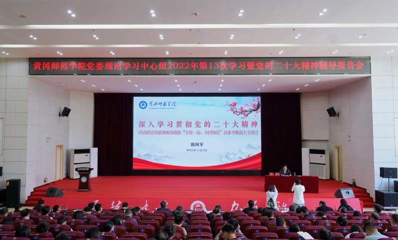 校党委副书记陈朝阳领学中国共产党第二十次全国代表大会精神,校党委副书记王基家传达《中共中央关于认真学习宣传贯彻党的二十大精神的决定》,校党委常委、副校长宋文生传达《中共黄冈师范学院委员会关于学习宣传贯彻党的二十大精神实施方案》。