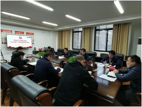 本网讯 11月30日下午,学校办公室党支部在厚德楼707会议室以线上线下相结合方式开展11月份主题党日活动。校党委书记陈向军以普通党员身份参加本次活动并讲话。他强调,要切实推动党的二十大精神付诸于行、见之于效,助推学校高质量发展、平安稳定发展。