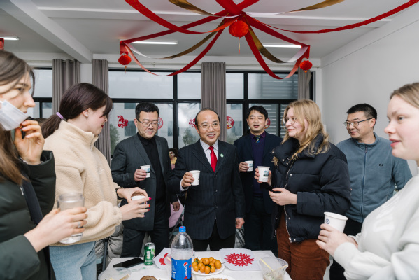 国际教育学院全体教师,外国语学院、美术学院、新闻与传播学院教师代表以及后勤产业集团管理人员代表等参加联欢活动。