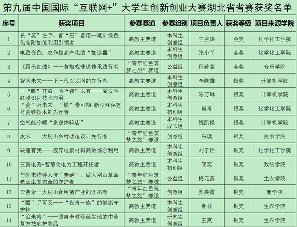 本网讯 730日,为期两天的第九届中国国际“互联网+”大学生创新创业大赛湖北省复赛在湖北工业大学落幕。经过激烈角逐,我校共获得金奖3项,银奖5项,铜奖6项。