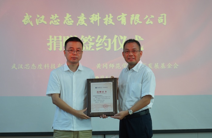本网讯 9月6日上午,武汉芯态度科技有限公司捐赠仪式在求实楼219会议室举行。该公司向学校教育发展基金会捐赠150万元(已于8月30日到账),助力学校事业高质量发展,校党委副书记、校长漆昌柱,党委副书记、学校教育发展基金会理事长陈朝阳,党委常委、副校长宋文生,优秀校友、武汉芯态度科技有限公司总经理罗浩先生出席捐赠仪式。仪式由宋文生主持。