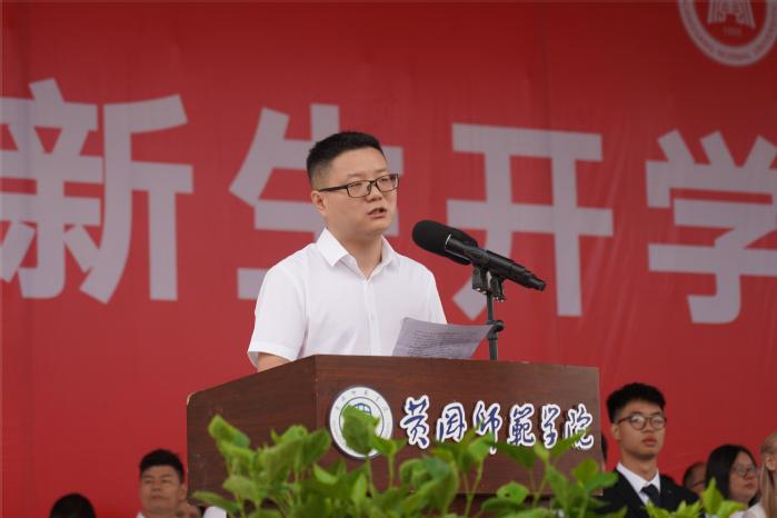 教师代表、湖北省青年拔尖人才李威,校友代表、黄州区委常委、组织部部长、全国“人民满意的公务员”阮利红,在校生代表、学科教育教学(数学)2022级硕士生王弋,新生代表、生农学院“优师计划”物理类最高分谢秦琼,俄罗斯留学生代表、文学院 2023级语言生阿雅分别发言。李威回顾了自身的求学科研经历,希望同学们做真知真理的求索者、脚踏实地的躬耕者、砥砺奋进的同行者。阮利红从学长的角度,结合在黄师的学习时光,寄语同学们要以梦为马,不负韶华;以学为舟,奋楫笃行;以勤为道,行稳致远。王弋号召同学们珍惜资源,积极开拓,抓住机遇,勇于挑战,心怀感恩,与师为友。谢秦琼、阿雅表示,将秉承黄师精神,努力学习,在黄冈师范学院的土地上挥洒汗水,共筑美好的未来。