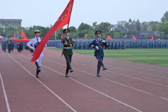 在庄严雄壮的国歌中,军训成果展示暨总结表彰大会正式拉开帷幕。