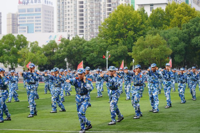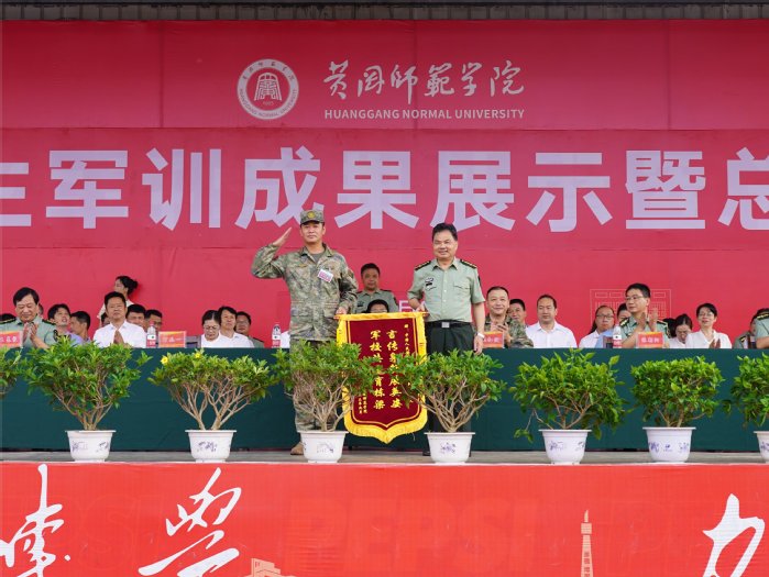 本网讯 旭日清风练兵场,黄师学子斗志扬。9月28日上午,学校2023级新生军训成果展示暨总结表彰大会在北区运动场隆重举行,校党委书记陈向军,黄冈军分区动员处处长姚红波,军训团团长丁兆一,校党委副书记陈朝阳、王基家,党委常委、副校长宋文生、胡国珍,党委常委汪晓凌出席大会。