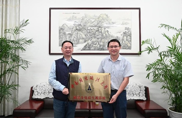 宋文生与周巍共同为“中南财经政法大学研究生优质生源基地”揭牌。