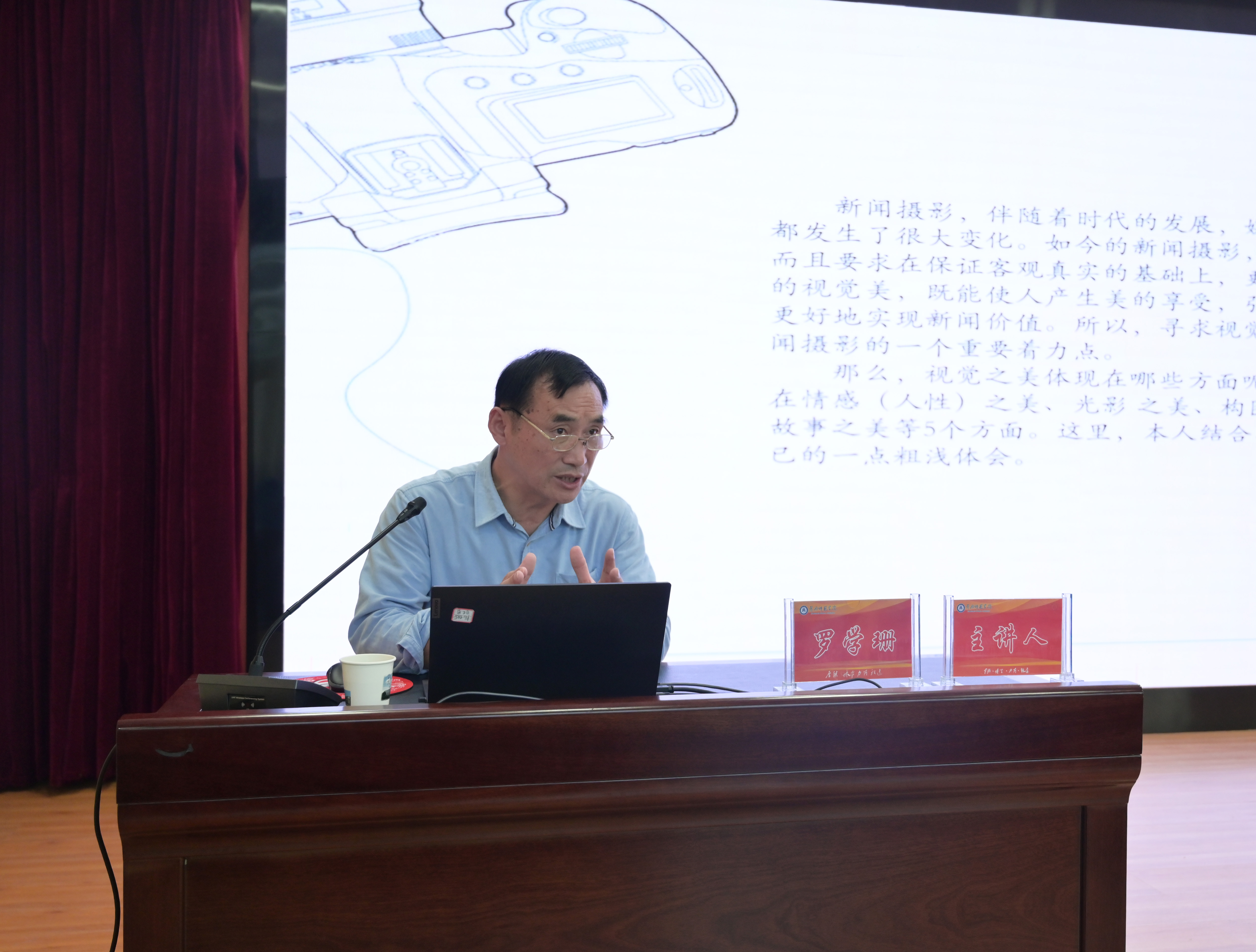罗学珊以《探寻新闻摄影的视觉美》为题作报告。他结合摄影专业知识和自身生动实践拍摄经验,通过选取大量生动具体的案例,从新闻摄影的情感之美、光影之美、构图之美、动感之美、故事之美等方面向大家详细讲解了新闻摄影技巧及新闻摄影作品要求等内容。罗学珊认为,新闻图片的视觉美,既能使人产生美的享受,引起心灵共鸣,而且能更好地实现新闻价值,寻求视觉之美,是做好新闻宣传的一个重要着力点。罗学珊指出,我们新闻宣传通讯员要学会调动情绪,激发情感,抓拍到最真实感人的场景;无论是艺术摄影,还是新闻摄影,光线运用得好,对塑造主体、渲染气氛、增强感染力,提升审美效果,有着至关重要的作用;新闻摄影的构图,在尊重新闻事实的基础上,要因势利导,让主题更加富有表现力和视觉冲击力。