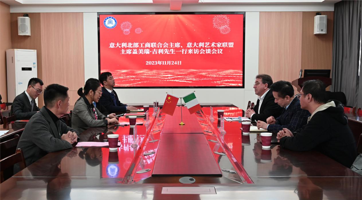 本网讯 11月24日,意大利北部工商联合会主席、意大利艺术家联盟主席盖美瑞•吉利及其助理邬红华等一行访问我校。校党委常委、纪委书记、监察专员胡娟出席会谈会议。