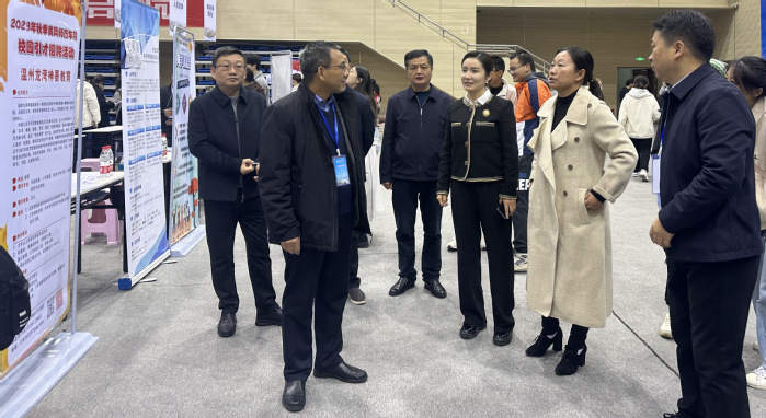 招聘会期间,校党委副书记、校长漆昌柱,校党委常委、副校长胡国珍,湖北省高等学校毕业生就业指导服务中心市场开发部部长程斯、副部长廖早晴,黄冈市人社局党组成员、总会计师张先锋,黄冈市人才事业发展中心主任孟奎等领导亲临招聘会现场,指导学生应聘求职,与用人单位代表深入交流,了解招聘专业和人才需求,向用人单位介绍学校办学特色和人才培养成果。漆昌柱要求,学校相关职能部门和教学学院要继续加强与广大用人单位的联系,拓宽就业渠道,为毕业生提供更多的就业机会和就业岗位。