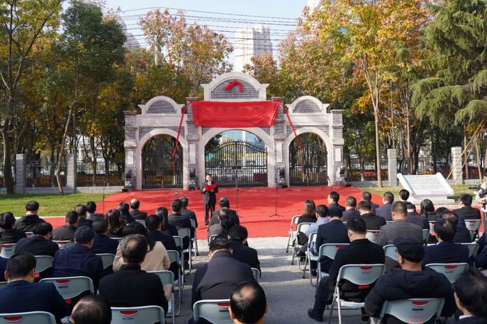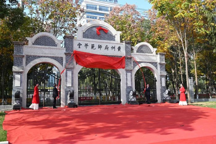 陈向军、漆昌柱共同为“黄州府师范学堂”校门揭幕。
