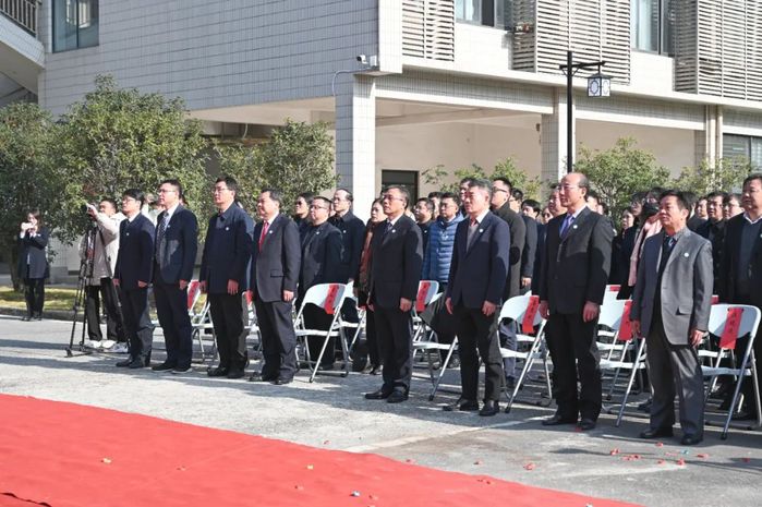 各中层单位党政主要负责人,退休教师及在校师生代表参加落成仪式。