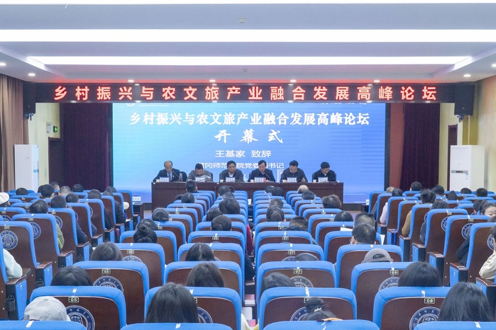 王基家在致辞中指出,本次论坛由我校承办,体现了大别山区各省市和各位专家学者对我校的厚爱和支持,为我们与各位专家学者搭建了相互交流学习的平台,必将极大促进我校相关学科专业发展,为乡村振兴与农文旅产业融合发展做出更大的贡献。董本汉、涂宝峰分别致辞。