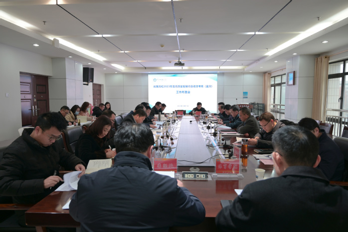 本网讯 为高标准迎接省教育厅省属高校2023年度高质量发展综合绩效考核(监测)工作,统筹推进学校事业高质量发展,12月11日下午,学校在厚德楼402会议室召开工作布置会。校党委书记陈向军等全体在家校领导出席会议,校党委副书记、校长漆昌柱主持会议。
