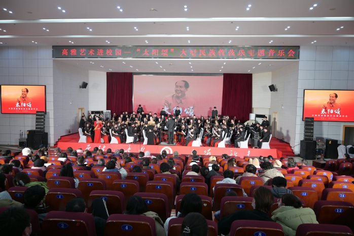 今年12月26日是中国人民伟大领袖毛泽东主席诞辰130周年纪念日。武汉音乐学院中国器乐系(武汉音乐学院青年中乐团)精心打造了一台《太阳颂》——民族管弦乐主题音乐晚会,以此纪念毛主席。我校邀请该乐团进行专场演出,是发挥美育教育功能,以美化人、以美育人的积极探索。