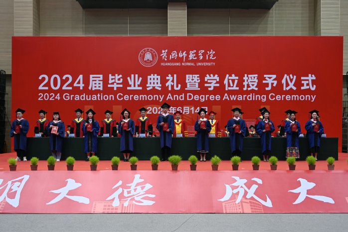 师生齐唱《黄冈师范学院校歌》,2024届毕业典礼暨学位授予仪式在歌声中圆满落幕。