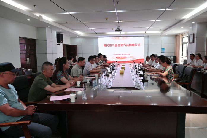本网讯 6月25日上午,黄冈市档案馆馆长罗伟及市文联党组成员、副主席赵鸿雁一行来校开展“党建+业务”交流学习暨黄冈市书画名家作品捐赠仪式。校党委常委、副校长宋文生出席活动。