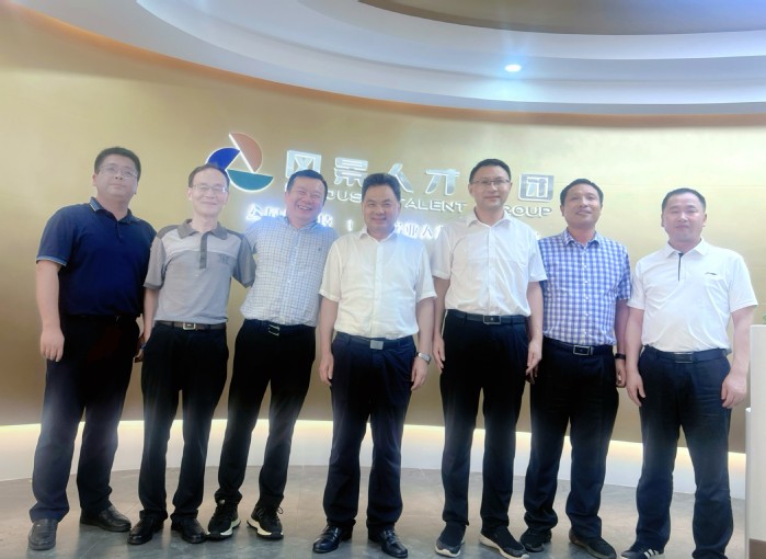 在杭州期间,陈向军、宋文生一行走访了我校校友、杭州湖北商会副会长、浙江风景人才集团董事长肖枫。