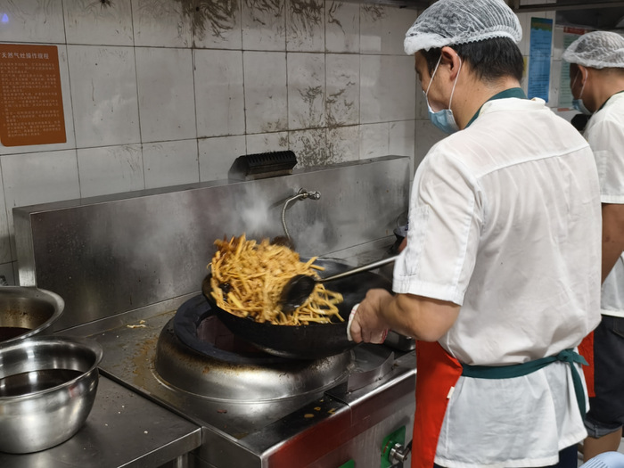 为全力保障暑期在校师生的饮食需求与服务质量,后勤产业集团紫园食堂暑期保持正常供餐状态,数十名食堂员工们不惧高温,迎难而上,用汗水保证食堂的安全正常有序运转。
