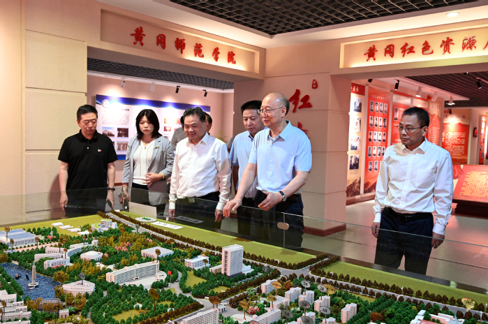 在黄冈红色资源馆,支树平了解了学校红色文化传承情况,强调红色资源是宝贵的精神财富,要继续发扬光大,让红色基因代代相传。