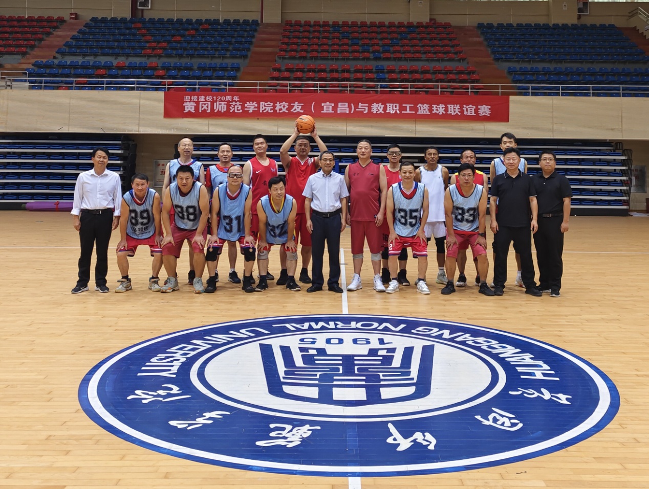 原副校级干部、宜昌校友分会顾问陈年友,宜昌校友分会会长南向前代表校友联队参加比赛。赛场上,校友和老师们以球会友、以赛传情,联谊赛氛围轻松、精彩激烈,双方队员热情高涨、斗志昂扬,传球配合、突破上篮淋漓尽致,攻防转换、远投三分精彩纷呈,两队比分持续交替上升。经过激烈角逐,教职工篮球队以100:97三分险胜校友联队。