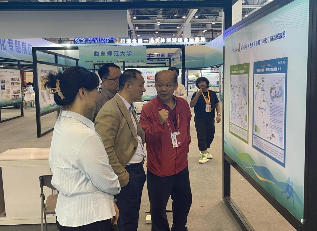 本次博览会,我校体育文化研究基地,以“东坡足迹蕲黄行-特色体育旅游(骑行)精品线路”为主题参展,展出的“东坡足迹蕲黄行-特色体育旅游(骑行)精品线路图”“东坡足迹蕲黄行田野调查情况图”“东坡足迹蕲黄行田野调查掠影”等实物展品,是我校优秀体育历史文化的物态凝练,凸显我校体育文化精神的内涵与实质,吸引了中央广播电视台-新影老故事频道《匠心》栏目组、湖北省体育总会、共青团湖北省委“青漾湖北”、 人民日报《中国城市报》等众多巡展嘉宾的目光,赢得高度赞扬。在“两个博览会”举办期间,基地工作人员本着助推体育文化交流互鉴,共建体育文化展示平台为初衷,与各参展高校进行交流、学习。