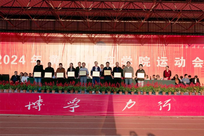 本网讯 10月25日下午,我校2024年运动会胜利闭幕,闭幕式在北校区田径运动场举行。校党委书记陈向军,党委副书记、校长漆昌柱等全体在家校领导出席闭幕式并为获奖单位颁奖。校党委常委、副校长、体育运动委员会主任夏庆利主持闭幕式。