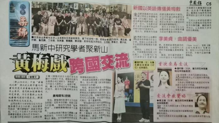 在参访期间,“黄梅戏文化传承与创新黄大年式教师团队”成员丁永钢作了题为《黄梅戏传统音乐与现代音乐的融合创新》专题讲座。段友芳、潘柠静等其他成员在专题讲座中穿插表演了《树上的鸟儿成双对》《对花》等黄梅戏经典唱段,向当地黄梅戏爱好者和从业人员教授了黄梅戏唱腔和身段表演等,合作演唱了《老鼠嫁女》《梨花颂》等曲目,并观看了新加坡南华潮剧社少儿学员表演的《穆桂英招亲》《哪吒》等潮剧以及马来西亚国际音乐学院学生表演的电声乐队与传统音乐演唱等。