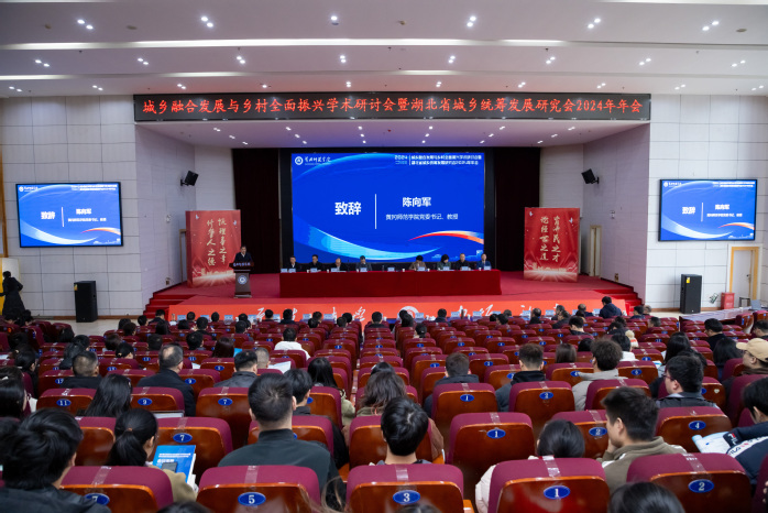 陈向军在致辞中介绍了我校在服务地方经济社会发展方面的成效,并指出,本次会议主题紧跟国家大政方针,聚焦城乡融合发展的新路径、新模式,充分体现了省城乡统筹发展研究会的与时俱进和使命担当,希望与会专家学者以本次学术研讨会为契机,深入学习贯彻党的二十届三中全会精神和习近平总书记考察湖北重要讲话精神,共同产出更多高质量的研究成果,为促进乡村全面振兴、实现城乡高质量融合发展作出更大的贡献。