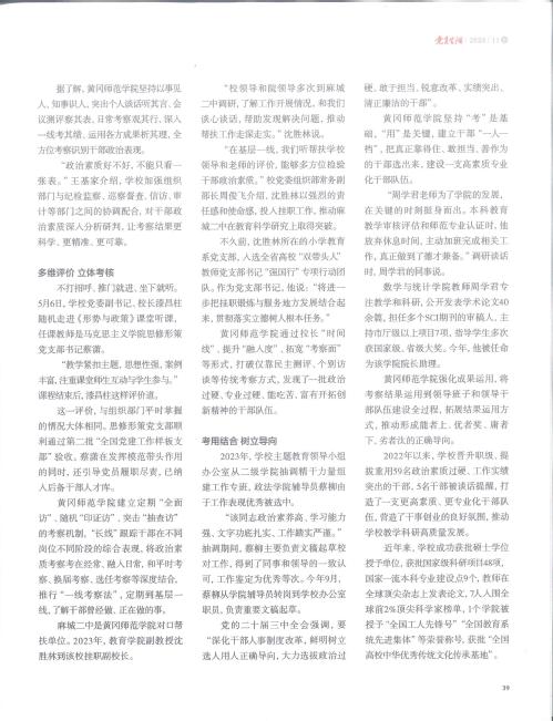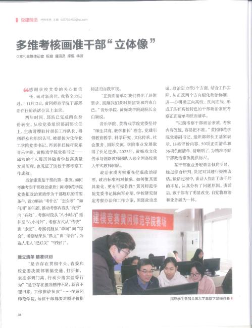 本网讯 近日,由中共湖北省委组织部主办的《党员生活》杂志刊发题为《多维考核画准干部“立体像”》的文章,文章围绕“建立清单,精准识别”“多维评价,立体考核”“考用结合,树立导向”等方面集中报道了我校做深做实干部政治素质考察工作的成效。