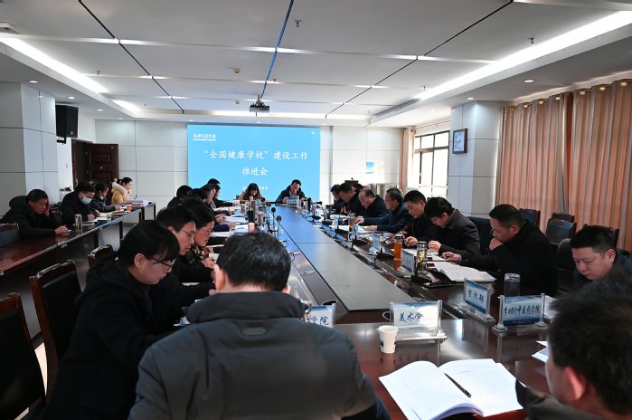 本网讯 为进一步践行“健康第一”教育理念,推进健康学校建设目标任务完成,1月8日上午,学校在厚德楼四楼二号会议室召开“全国健康学校”建设工作推进会。校党委副书记、校长漆昌柱,党委副书记陈朝阳,党委常委、副校长夏庆利、胡国珍等出席会议。胡国珍主持会议。