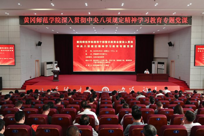 漆昌柱以《坚守育人初心 勇于自我革命 以作风建设新成效护航黄师高质量发展》为题,从“深学细悟强根基”“对标对表抓落实”“贯通融合促长效”三个方面讲授专题党课。