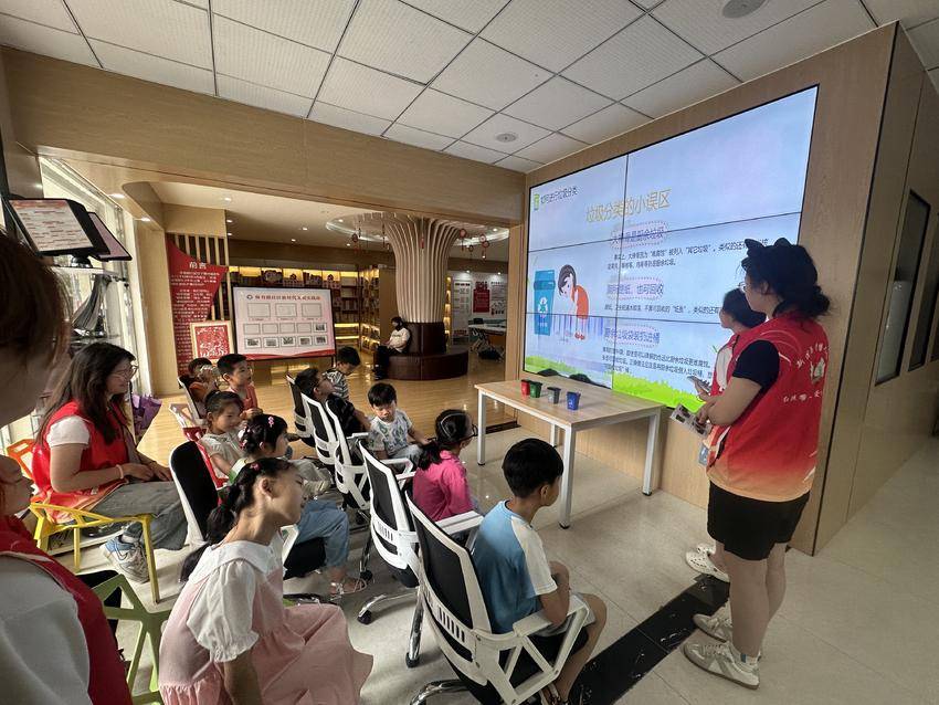 一个个问题引发孩子们踊跃举手抢答,现场气氛热烈。志愿者们详细讲解了垃圾四大分类、常见废弃物分类方法及环保意义,帮助孩子们树立“垃圾是放错位置的资源”的理念。其间,志愿者还通过实物展示,让孩子们直观地区分不同类型垃圾,加深理解。