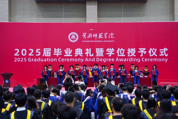 6月13日上午,黄冈师范学院2025届毕业典礼暨学位授予仪式在南校区体育运动中心主馆举行。校党委书记陈向军,党委副书记、校长漆昌柱等全体校领导出席仪式。校党委副书记陈朝阳主持仪式。