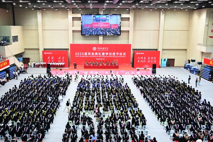 全场师生齐唱响黄冈师范学院校歌,以激昂的旋律表达对母校的祝福和热爱,2025届毕业典礼暨学位授予仪式在歌声中落幕。