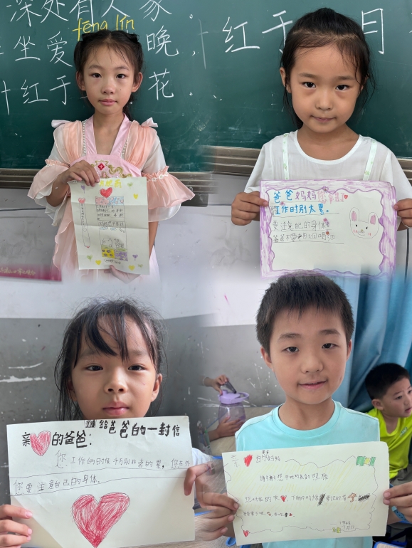 “我的思念比山间的大雾还浓”“我昨晚在梦中又梦到你了,你过年能回家看看我吗”“爸爸,你在外工作是不是很累,累了就歇歇吧,钱是赚不完的。”“妈妈,我想念你做的那香气四溢的饭菜了”“我爱你比宇宙还大”。到了写信环节,孩子们神情专注,一笔一划都饱含深情,他们用细腻的笔触,将生活点滴化作对远方父母的深情倾诉,纸页间的字迹或许稚嫩,却盛满了最纯粹的爱与想念。