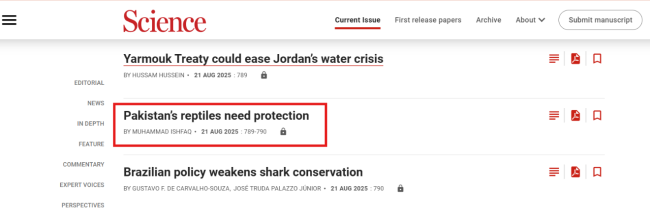 8月21日,黄冈师范学院计算机与人工智能学院教师Dr. Muhammad Ishfaq在国际知名期刊Science杂志以Letter形式发表评论文章“Pakistan’s Reptiles Need Protection”,黄冈师范学院为第一作者及通讯作者单位。