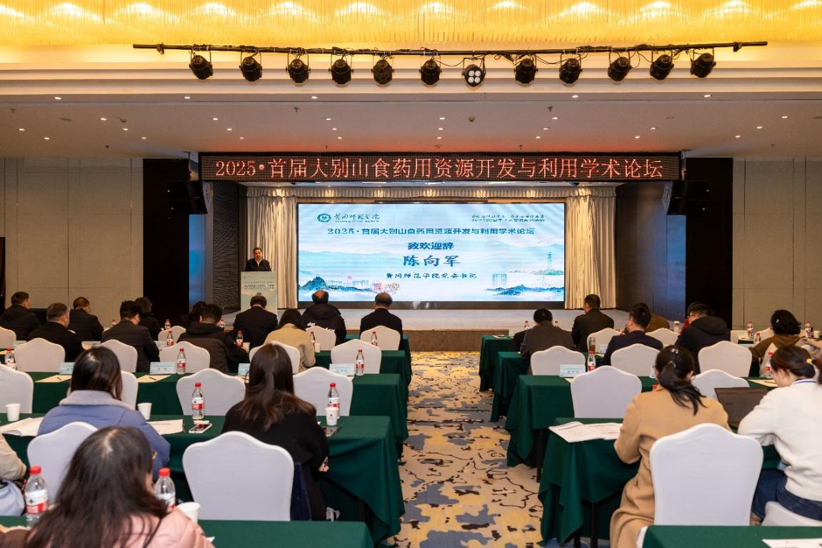 陈向军代表学校对与会专家学者表示欢迎,介绍了学校发展历程和办学成就。他指出,本次论坛是贯彻落实党的二十届四中全会精神的具体举措,旨在凝聚鄂豫皖三省学术力量,共同探索大别山食药用资源开发与利用新路径,为大别山区振兴发展贡献智慧。