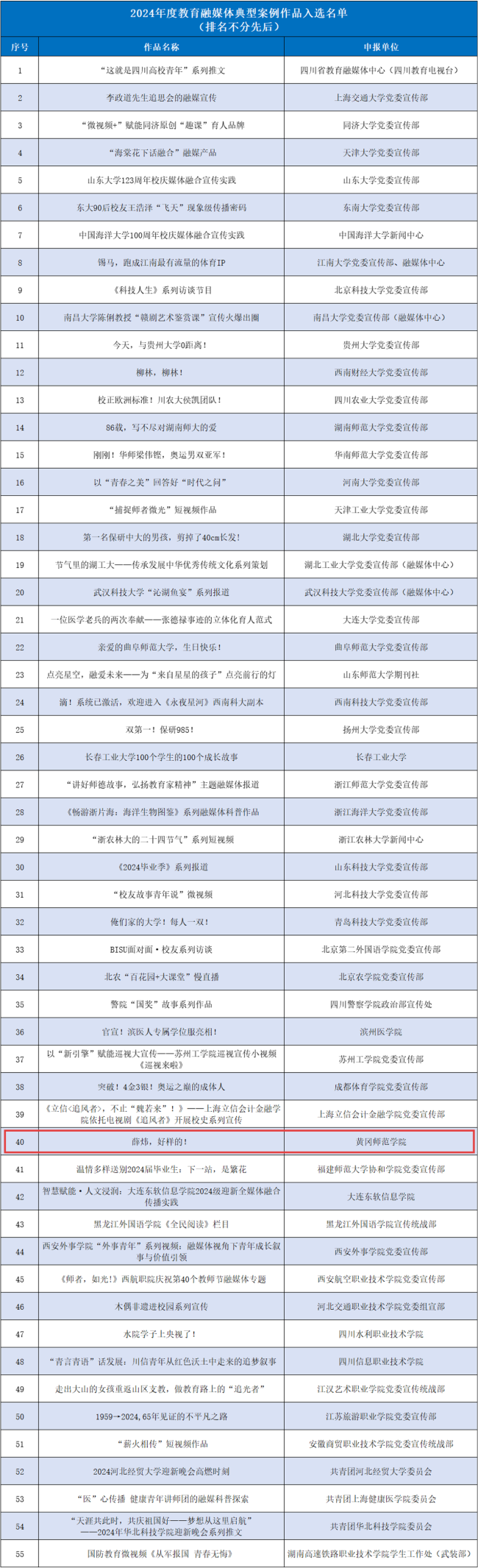 中华出版促进会教育新闻出版专业委员会和中国教育电视协会高校电视专业委员会于5月19日至6月20日共同开展了“2024年度教育融媒体典型案例作品、案例项目征集”活动,以全面梳理教育融媒体建设的年度成果,推广可复制、可借鉴的先进经验。活动受到广大教育新闻从业者的关注和参与,经专家严格审核与综合评议,入选55件典型案例作品。
