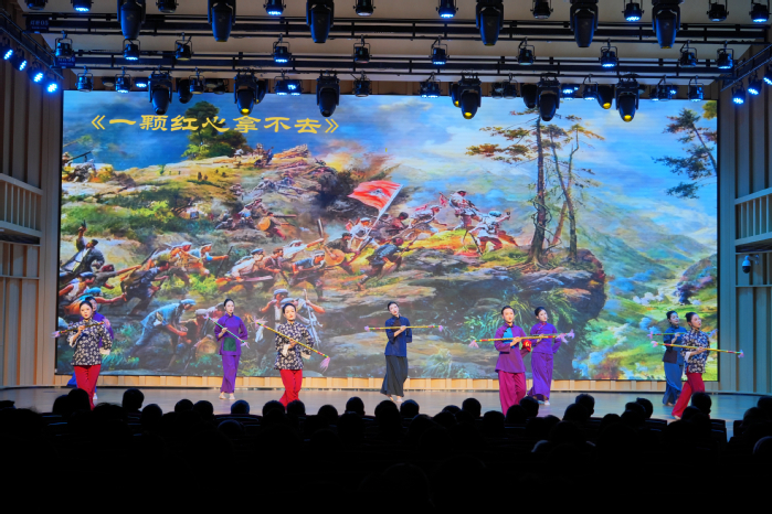 音乐党课以“红旗漫卷大别山”为主题,以新民主主义革命为脉络,通过9首红色歌谣串联“先驱播火,唤起工农跟党走”“不胜不休,苏区红军勇战斗”“孤悬敌后,抗日劲旅歼倭寇”“勇当前锋,千里跃进利剑飕”四个篇章,采取“听红歌—学党史—悟思想—见行动”的内在逻辑,以艺术的形式再现“大别山28年红旗不倒”波澜壮阔的革命历史,生动诠释了大别山精神的核心内涵。