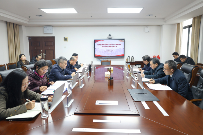 本网讯 3月20日,学校党委领导班子树立和践行正确政绩观学习教育读书班举行集中学习。校党委书记陈向军带头领学《习近平关于树立和践行正确政绩观论述摘编》第一章并讲话,校党委副书记、校长漆昌柱领学《习近平关于树立和践行正确政绩观论述摘编》第二章,校党委副书记王基家领学《习近平总书记地方工作期间坚持正确政绩观生动实践》。全体在家校领导出席会议。