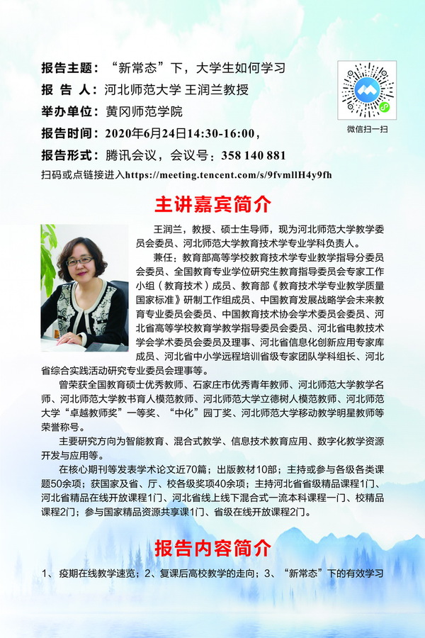 主讲嘉宾简介:王润兰,教授、硕士生导师,现为河北师范大学教学委员会委员、河北师范大学教育技术学专业学科负责人。