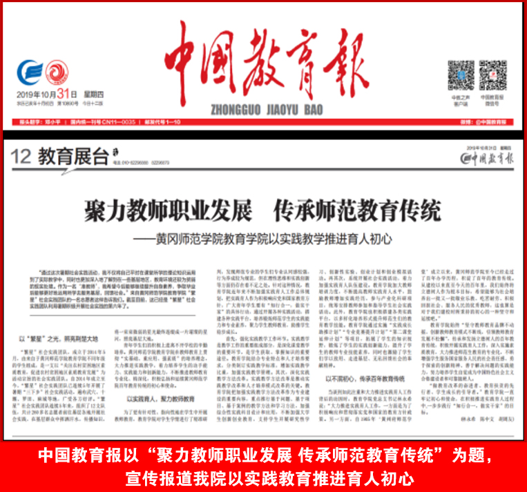 厚重的师范教育历史为我校教育学科的发展奠定了坚实的基础,经历多年改革创新与发展,现教育学院已发展成为湖北省重要教育智库和师范生培养重地,在鄂东、全省乃至全国基础教育界享有盛誉。学院设有教育技术学、数字媒体技术、学前教育、小学教育4个本科专业,现有在校生1500余人;教育管理、现代教育技术2个教育硕士专业学位点,是我校首批开始招收研究生的教育硕士专业学位点,已招收9届研究生,3位教师获得全国教育硕士优秀教师和教学管理工作者荣誉称号。