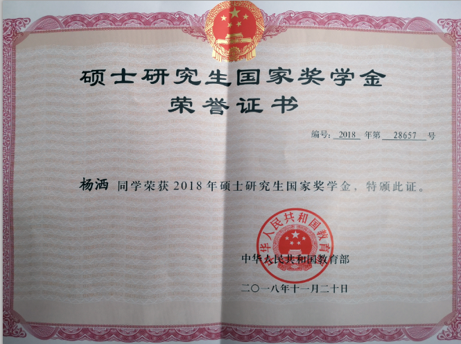 现代教育技术专业硕士研究生毕业生杨洒获评硕士研究生国家奖学金