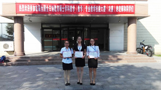 2016年9月24-26日,全国首届全日制教育硕士学科教学(数学)专业教学技能大赛(决赛)在鲁东大学(山东省烟台市)举行,共有71所高校的130名选手参加了决赛角逐。我校数理学院学科教学(数学)专业2015级硕士研究生程丽、刘姗和2016级研究生廖婷均荣获二等奖。
